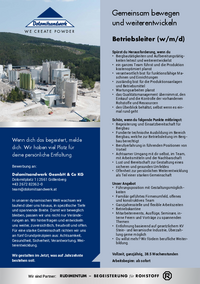 Gemeinsam bewegen und weiterentwickeln W E C R E AT E P O W D E R Betriebsleiter (w/m/d) Spürst du Herausforderung, wenn du • Bergbautätigkeiten und Aufbereitungstätigkeiten leitest und…